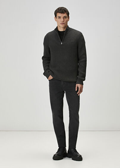 Collar with zipper closure, Thessaloniki knitted textured sweater