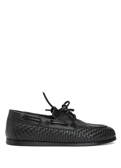 Black Women's Knit Leather Loafer