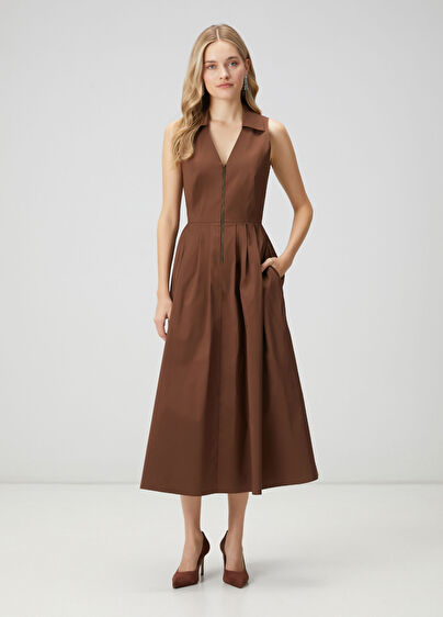 Shirt collar, sleeveless, midi length, taffeta dress