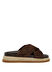 Rounded toe, cross-band, suede slippers