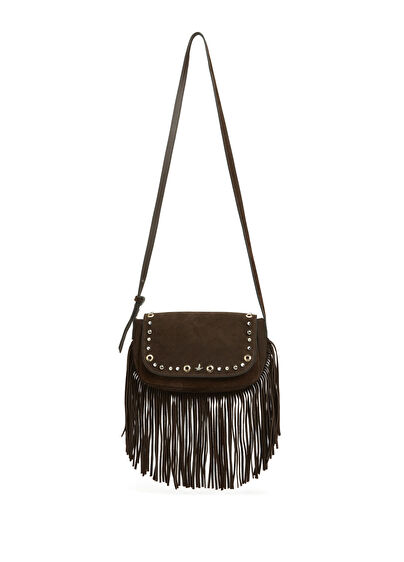 Brown Tasseled Stud Women's Leather Bag
