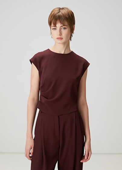 Crew neck, drape detailed blouse