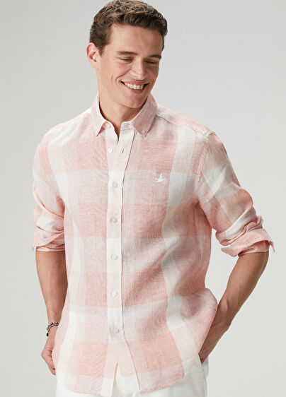 Button collar, check patterned, linen shirt