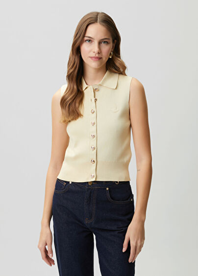 Polo, embossed logo, sleeveless knit cardigan