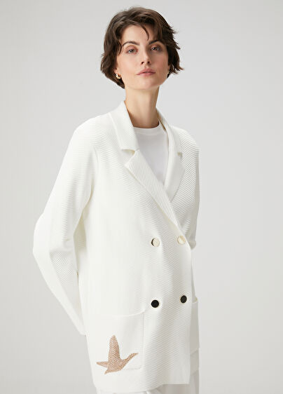 Notch lapel, ottoman textured, double-breasted knit jacket