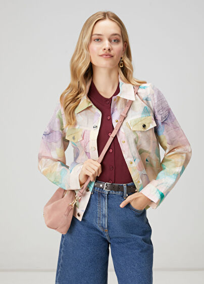 Shirt collar, snap closured, linen jacket