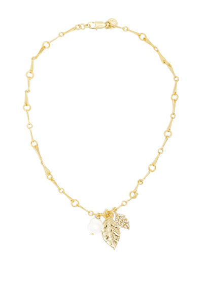 Gold Leaf Detailed Women's Long Necklace