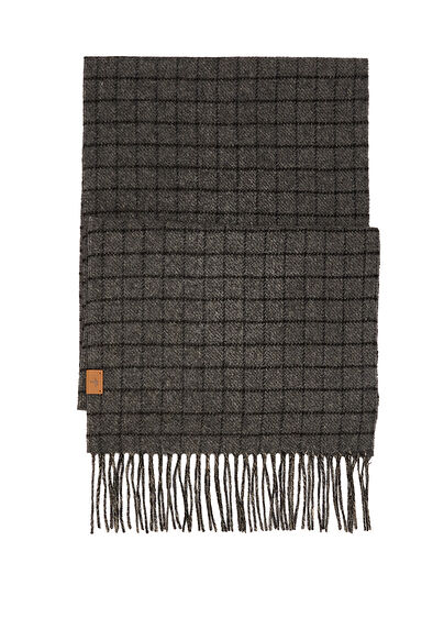 Grey Square Patterned Men's Wool Scarf