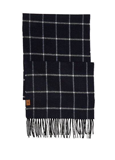 Square patterned, wool cashmere blended scarf