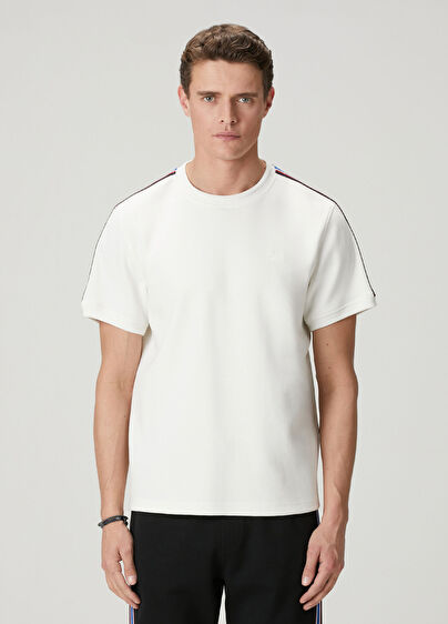 Crew neck, stripe detailed, logo embroidered t-shirt
