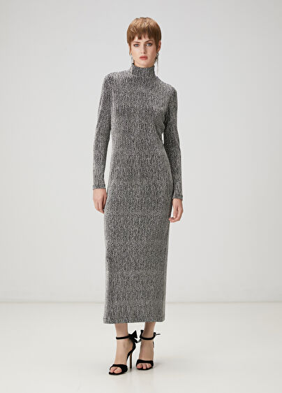 High neck, embellished, long sleeve, maxi length dress