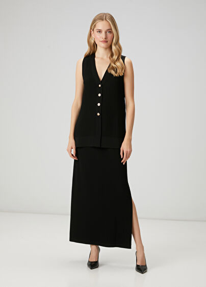 Yüksek bel, fitilli örgü, maksi boy, triko etek Yırtmaç detaylı Ürün bedeni: S / Model ölçüsü: Boy: 174 cm - Göğüs: 83 cm - Bel: 59 cm - Kalça: 88 cm Yeni sezon hazır giyim alışverişlerinizde ücretsiz tadilat yapılmaktadır65% Viscose 35% Polyamide2026 - Spring/SummerProduct Code: 102332587_999
