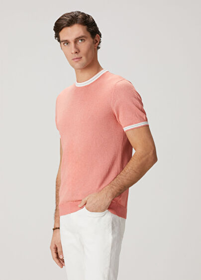 Bisiklet yaka, şerit ribana detaylı, keten karışımlı kazak
