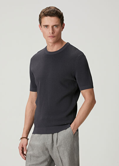 Bisiklet yaka, petek örgü dokulu triko