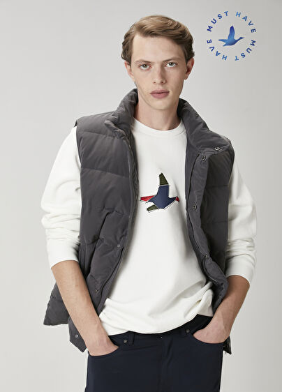 Dik yaka, fermuar kapatmalı, çıtçıtlı, puff yelek