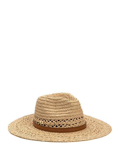 Bej Delikli Kalın Kemerli Kadın Hasır Şapka
