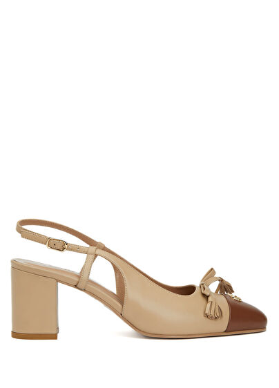 Bej Kalın Topuklu Maskaretli Kadın Deri Ayakkabı