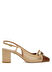 Yuvarlak burun, logo tokalı, fiyonk detaylı, deri topuklu ayakkabı