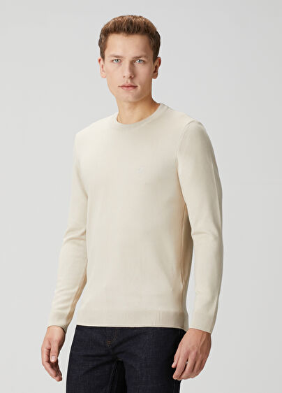 Bisiklet yaka, düz renk, logo nakışlı kazak