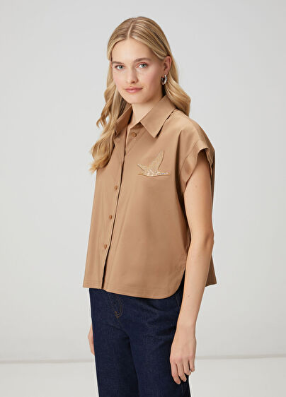 Klasik yaka, kolsuz tafta gömlek