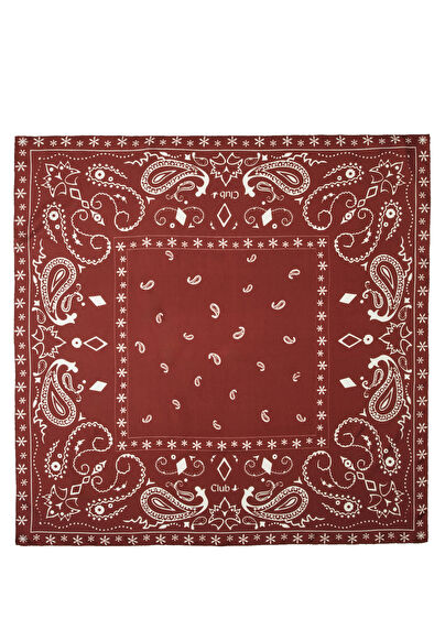 Bordo Şal Desenli İpek Eşarp