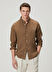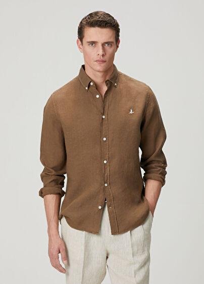 Düğmeli yaka, düz renk, keten gömlek