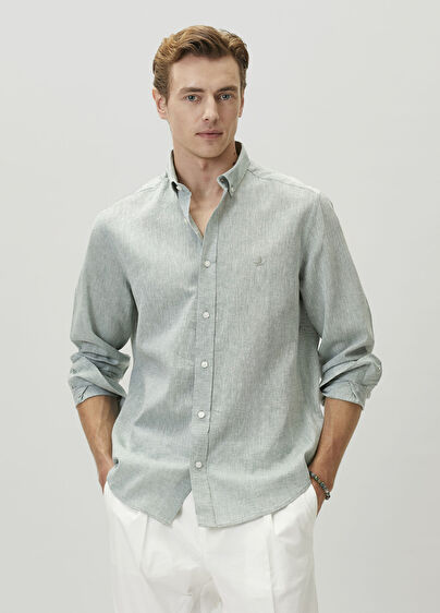 Beymen Club Comfort Fit Su Yeşili Keten Gömlek