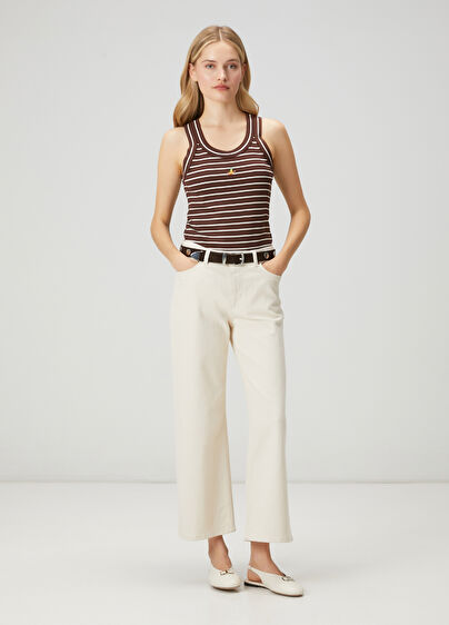 Normal (mid-rise) bel, boru (straight) paça, jean pantolon