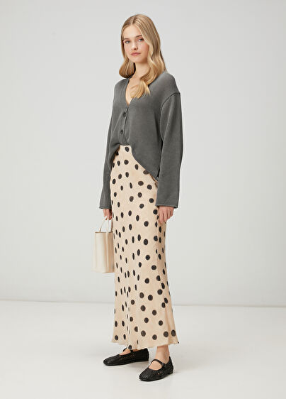 Ekru Puantiyeli Evaze Etek