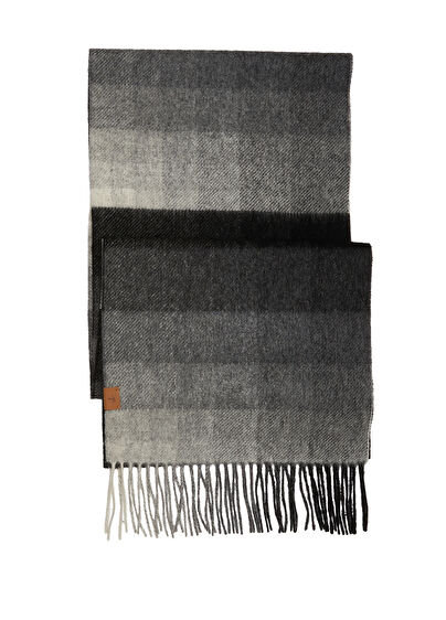 Gri Kare Desenli Erkek Yün Atkı