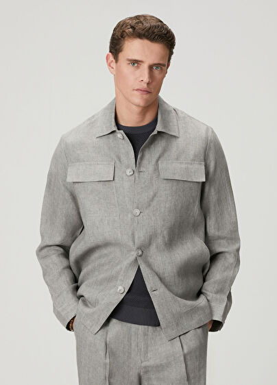 Gri Keten Dış Gömlek