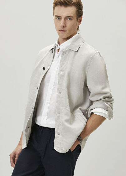 Beymen Club Gri Parça Boya Düğmeli Keten Dış Gömlek