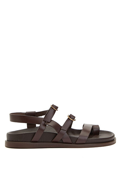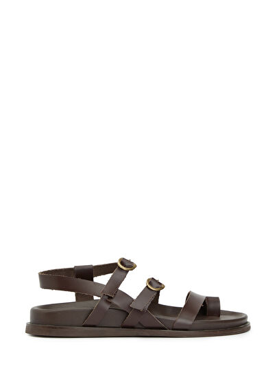 Kahverengi Amorf Tokalı Kadın Deri Sandalet