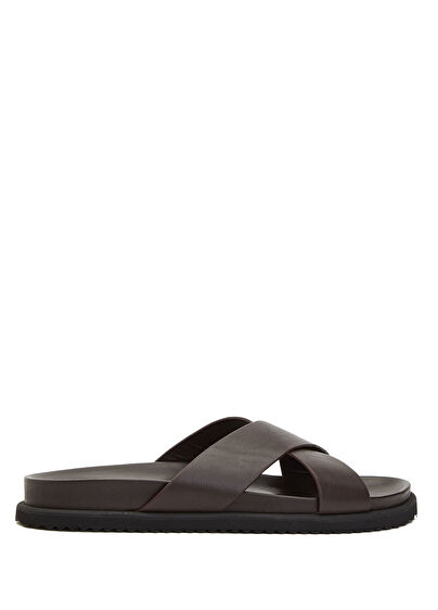 Yuvarlak burun, çapraz bantlı, deri terlik