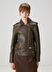 Klasik yaka, fermuar kapatmalı, kruvaze deri ceket