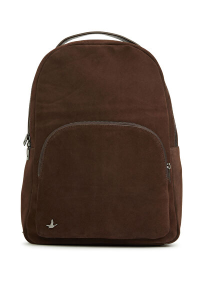 Ayarlanabilir sırt askılı, fermuar kapatmalı, süet sırt çantası