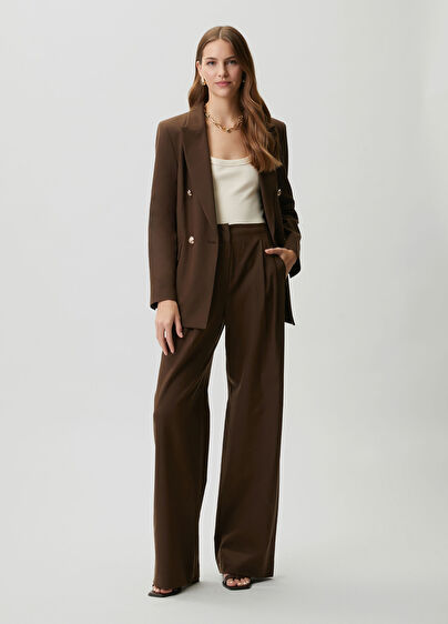 Yüksek bel, pervazlı, keten palazzo pantolon