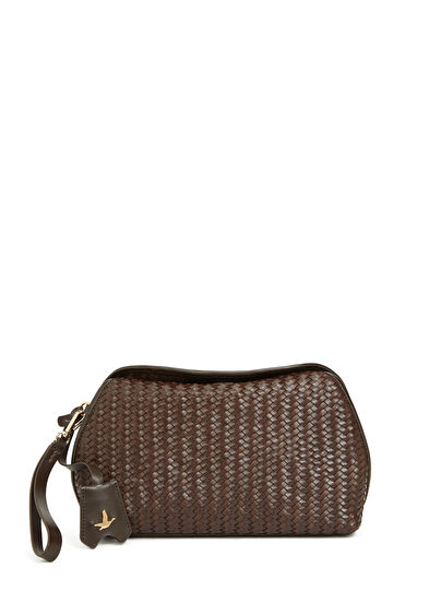 Kahverengi Örgü Kadın Deri El Portföyü