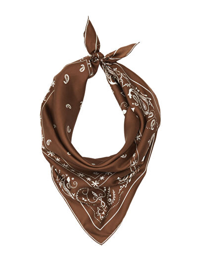 Kahverengi Şal Desenli İpek Eşarp