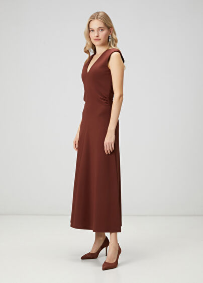 V yaka, kolsuz, midi boy elbise Drape detaylı Ürün bedeni: 36 / Model ölçüsü: Boy: 174 cm - Göğüs: 83 cm - Bel: 59 cm - Kalça: 88cm Yeni sezon hazır giyim alışverişlerinizde ücretsiz tadilat yapılmaktadır