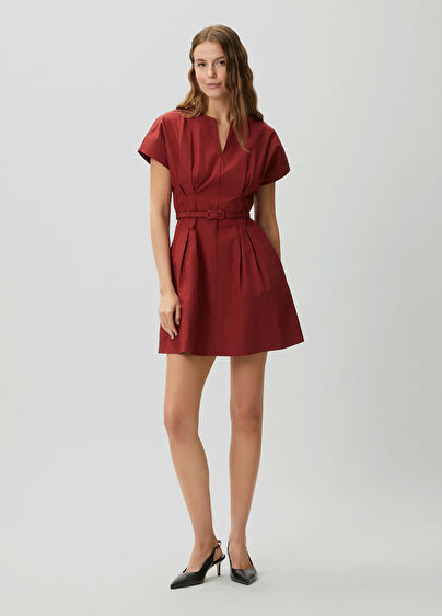 Kemerli, korsaj detaylı, kısa kollu, mini elbise