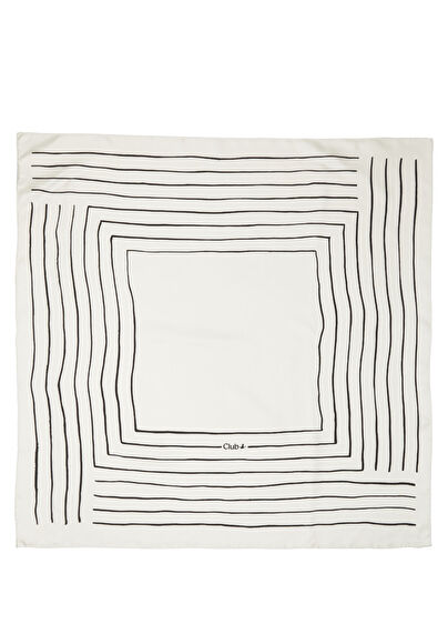 Kırık Beyaz Dalgalı Çizgili İpek Eşarp