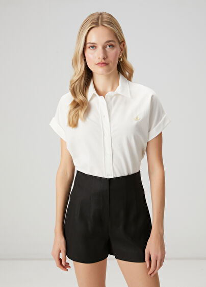 Düğme kapatmalı, kısa kollu, pike dokulu gömlek Logo nakışlı Ürün bedeni: S / Model ölçüsü: Boy: 174 cm - Göğüs: 83 cm - Bel: 59 cm - Kalça: 88 cm Yeni sezon hazır giyim alışverişlerinizde ücretsiz tadilat yapılmaktadır