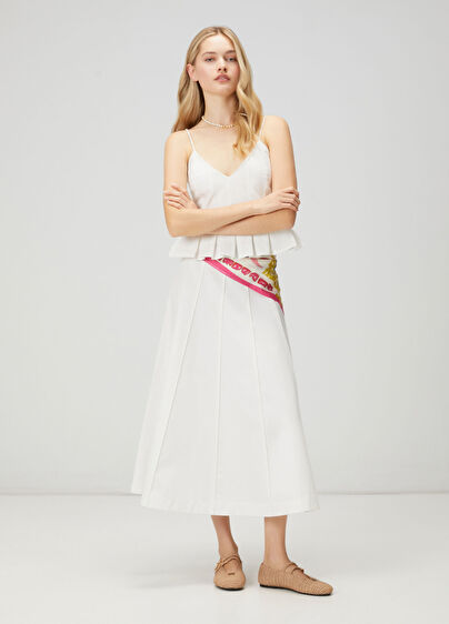 Yanı gizli fermuarlı, midi boy, kloş etek