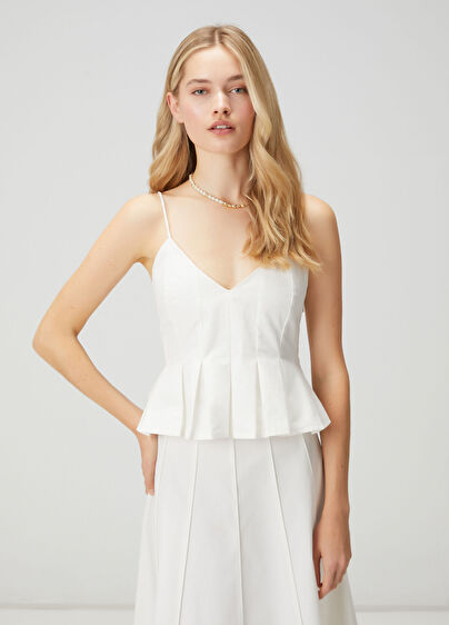 İp askılı, pileli, düz renk bluz