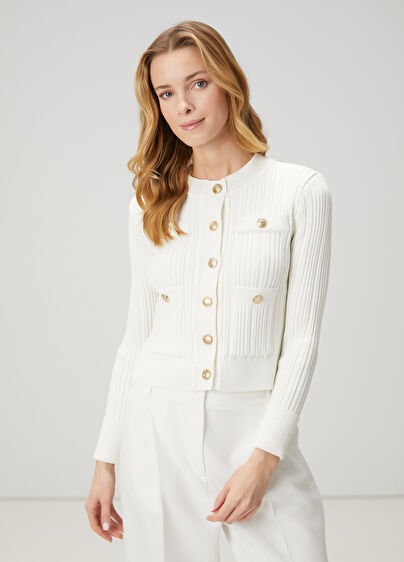 Gold düğmeler, ceketin şıklığını tamamlayan önemli bir detaydır. Bu düğmeler, kırık beyaz renge zarif bir dokunuş katarak ceketin daha sofistike bir görünüm kazanmasını sağlar. Düğmelerin kalitesi ve dayanıklılığı, uzun süreli kullanım için idealdir. Gold düğmeler, aynı zamanda ceketin farklı aksesuarlarla kombinlenebilmesine de olanak tanır.