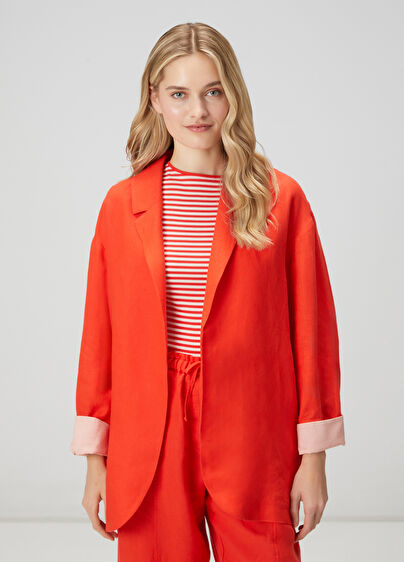 Kelebek yaka, astarsız, keten ceket Kol ucu garnili, yırtmaç detaylı Ürün bedeni: 36 / Model ölçüsü: Boy: 174 cm - Göğüs: 83 cm -Bel: 59 cm - Kalça: 88 cm Yeni sezon hazır giyim alışverişlerinizde ücretsiz tadilat yapılmaktadır
