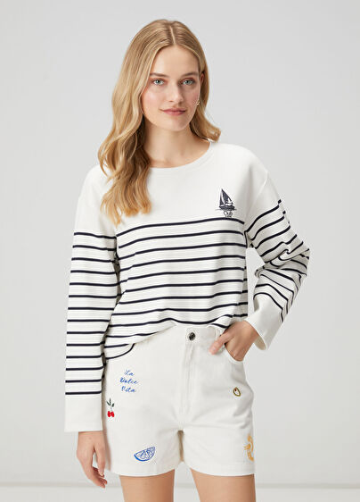 Crew neck, sail printed, striped sweatshirt