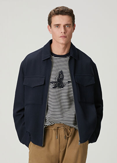 Klasik yaka, fermuar kapatmalı, örme ceket