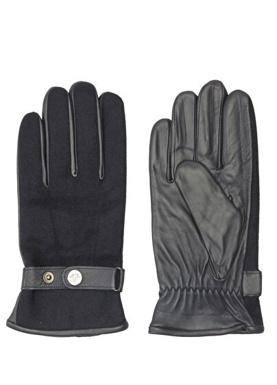 Çıtçıt detaylı, kumaş garnili, deri eldiven